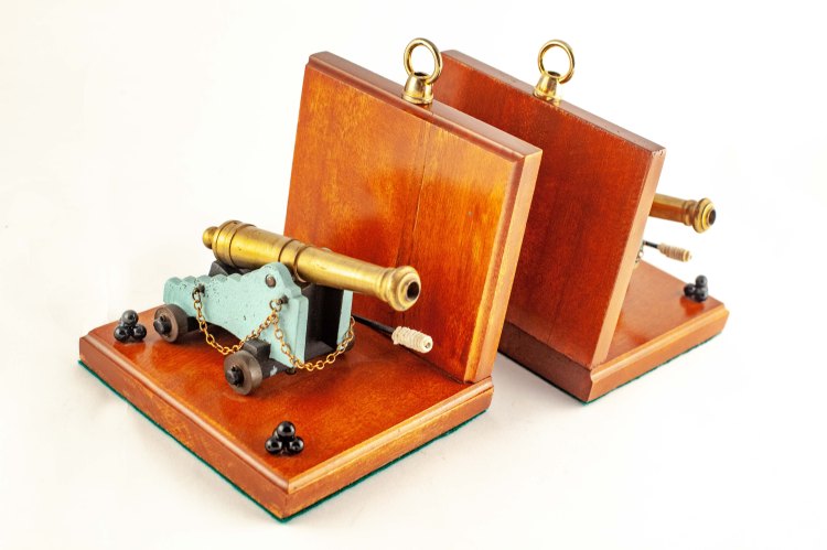 Concernant cet item, j’ai trouvé deux canons sur internet sur le site ebay.ca. Ce ne sont pas les mêmes canons mais quand les appuis-livres ont été complètement réalisés, c’était extrêmement ressemblant. Encore une fois, les appuis-livres sont une création de M. Luc Pilon de l’entreprise VIP Memorial.