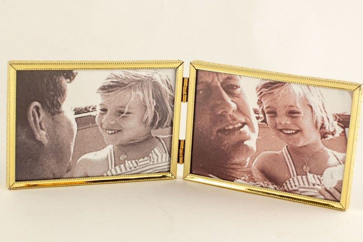 Le président Kennedy avait sur son bureau deux photographies avec sa fille Caroline. Les photographies étaient dans un double-cadre doré.