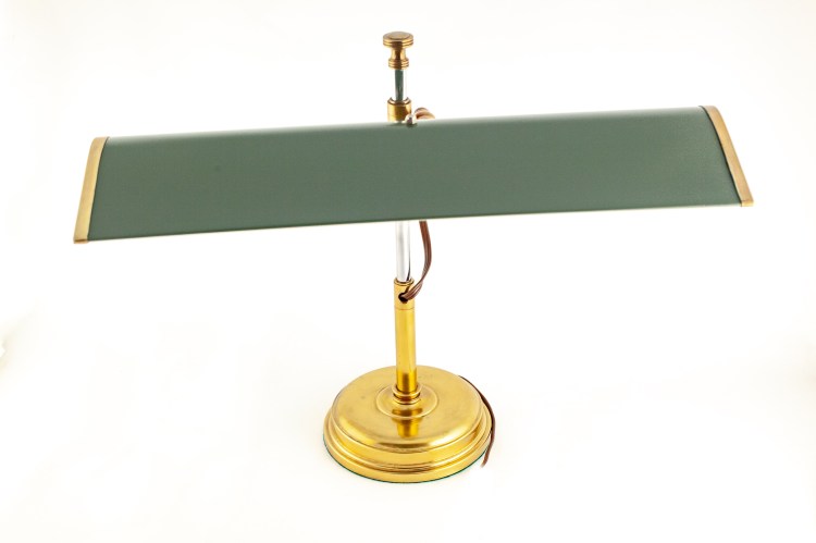 Sur le Bureau Resolute, il y avait une lampe verte avec un pied en laiton. Il s’agissait d’une lampe Hercolite Executive faite par la compagnie Herco Art Manufacturing of Wallingford au Connecticut. J’ai trouvé une lampe identique à celle utilisée par le président Kennedy sur internet sur le site ebay.ca.