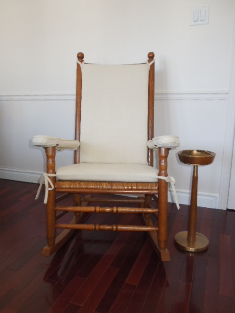 Dans le Bureau ovale, il y avait une chaise berceuse que le président Kennedy utilisait régulièrement dû à ses maux de dos. Tout juste à côté de la chaise berceuse, il y avait un cendrier sur pied fait de bois et de laiton.