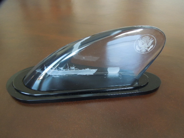 Dans le plexiglass, il y a un croquis du PT Boat et du sceau présidentiel.