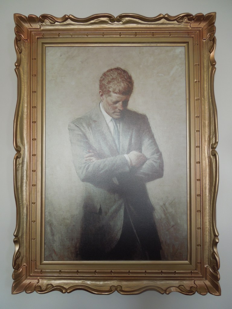 Naturellement, la première représente le Président Kennedy. Il s’agit d’une reproduction du portrait posthume officiel du président John F. Kennedy que l’on peut voir à la Maison-Blanche. La toile est une œuvre de l’artiste Aaron Shikler.