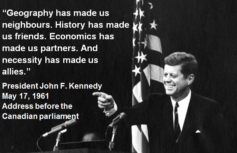 « La géographie a fait de nous des voisins. L’histoire a fait de nous des amis. L’économie a fait de nous des partenaires. Et la nécessité a fait de nous des alliés. »